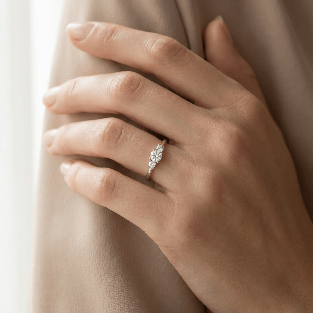 טבעת תלתן משובצת יהלומים | 0.30 קראט | זהב 14K