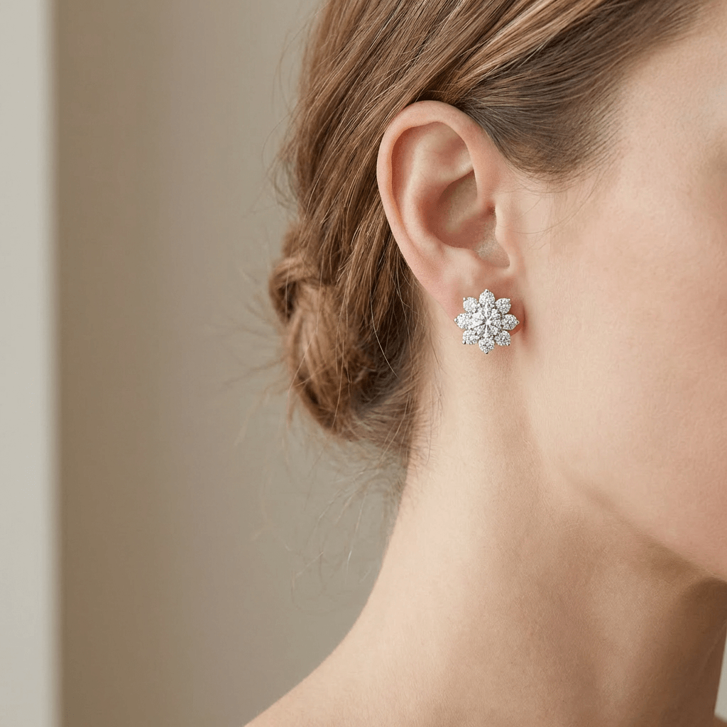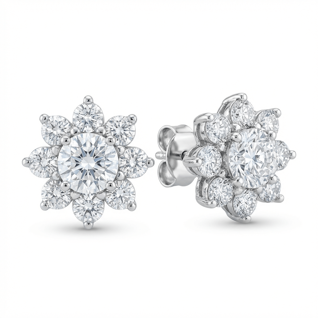 עגילי פרח יהלומים | 2.50 קראט | זהב 14K