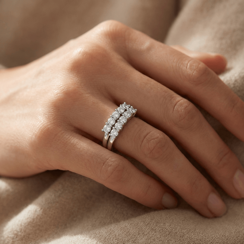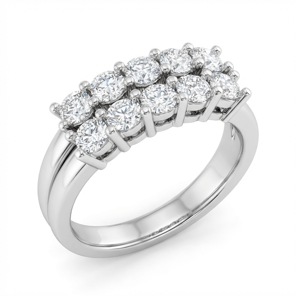 טבעת שתי שורות יהלומים | 1 קראט | זהב 14K