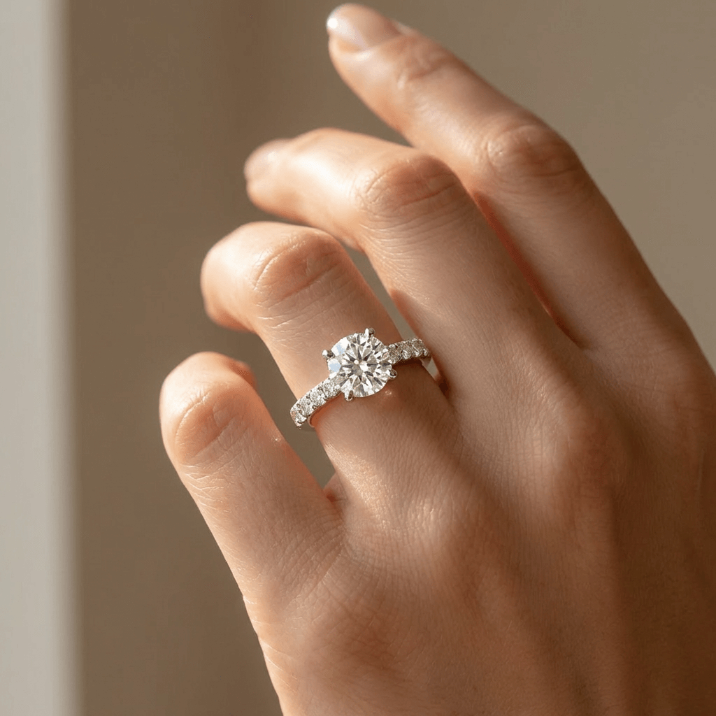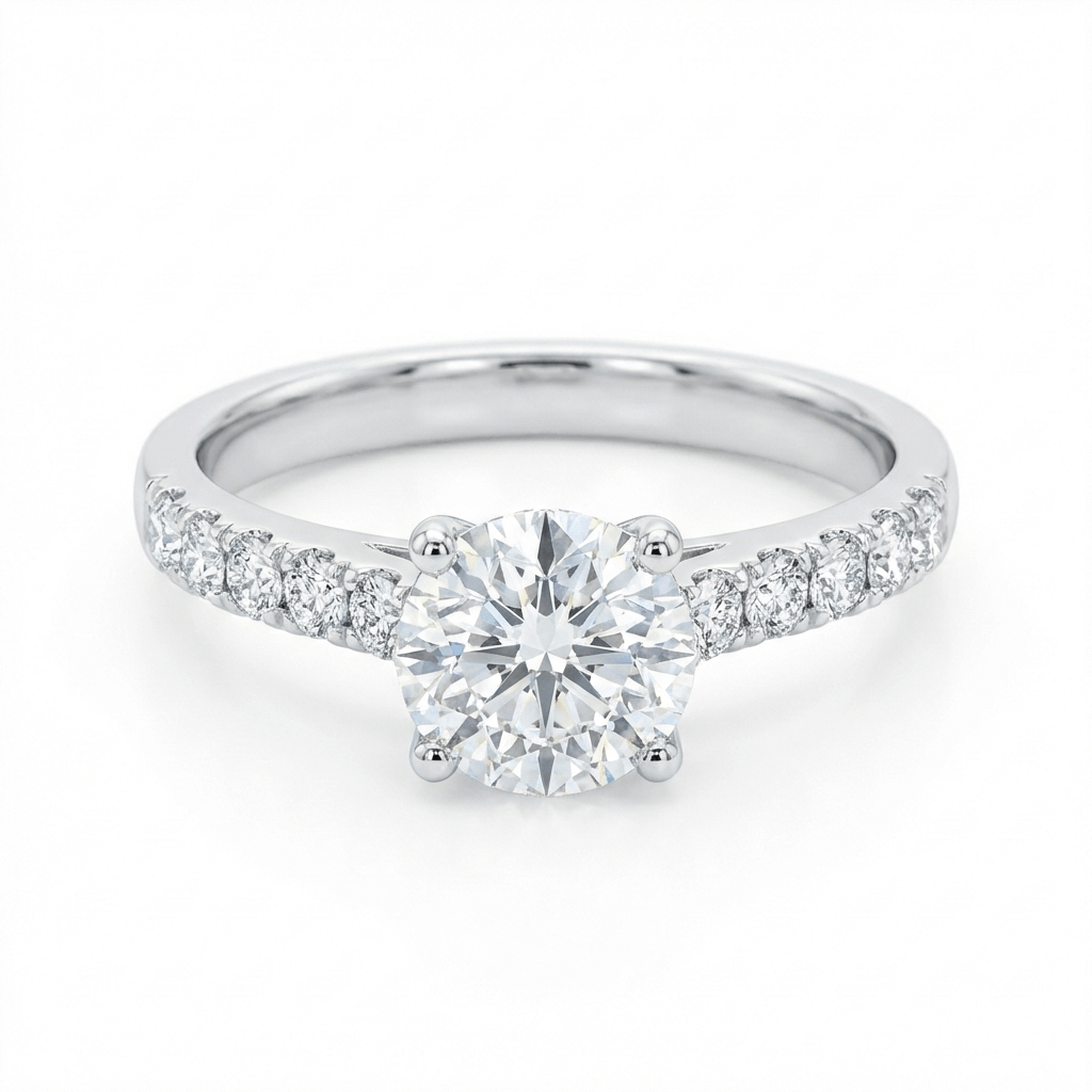 טבעת סוליטר עם יהלומים בצדדים | 1.42 קראט | זהב 14K