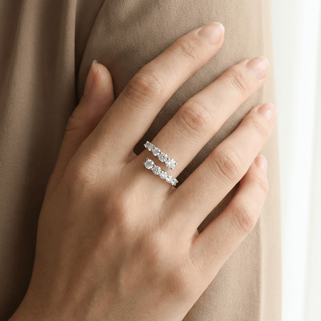 טבעת פתוחה משובצת יהלומים | 1 קראט | זהב 14K