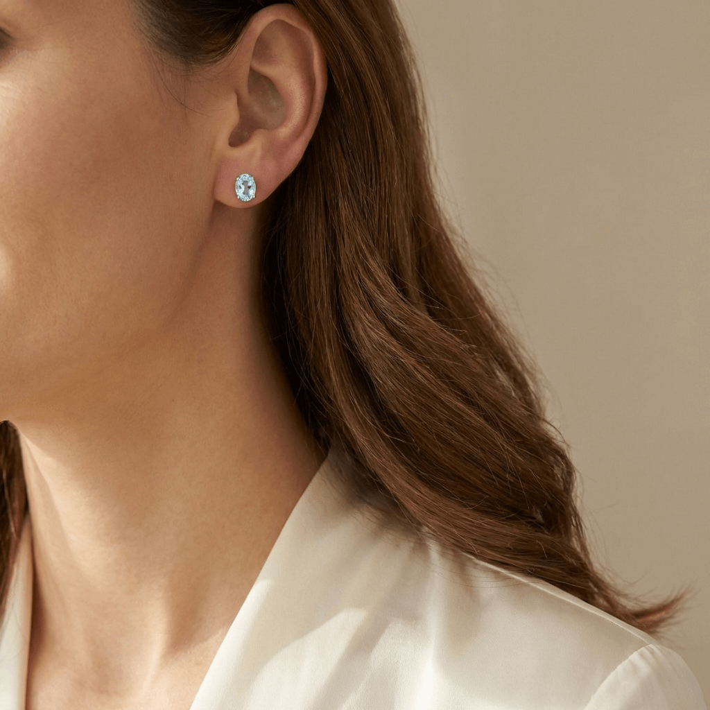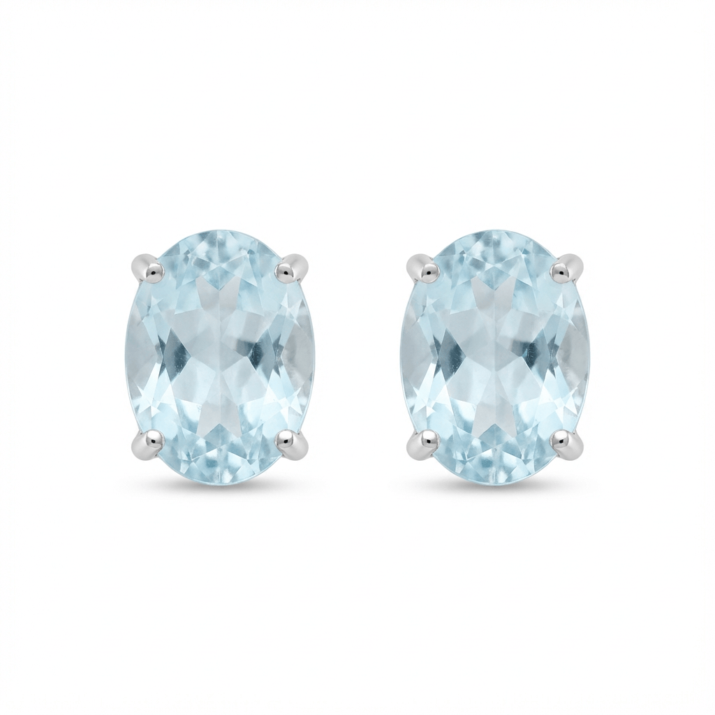 עגילי אקוומרין צמודים "טיפת השמיים" | אקוומרין 1.86ct | זהב לבן 14K