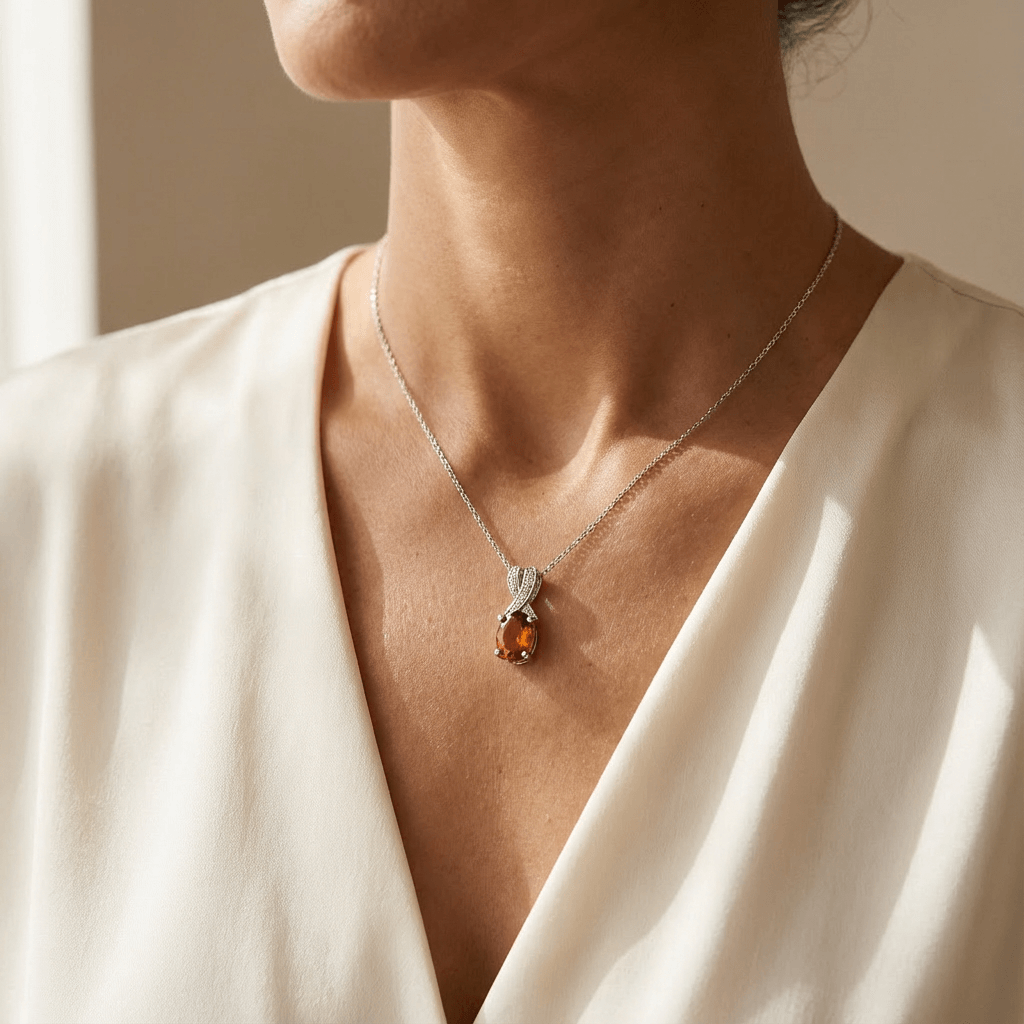 תליון גרנט מנדרין "קשר אינסוף" | גרנט 3.97ct | זהב לבן 18K
