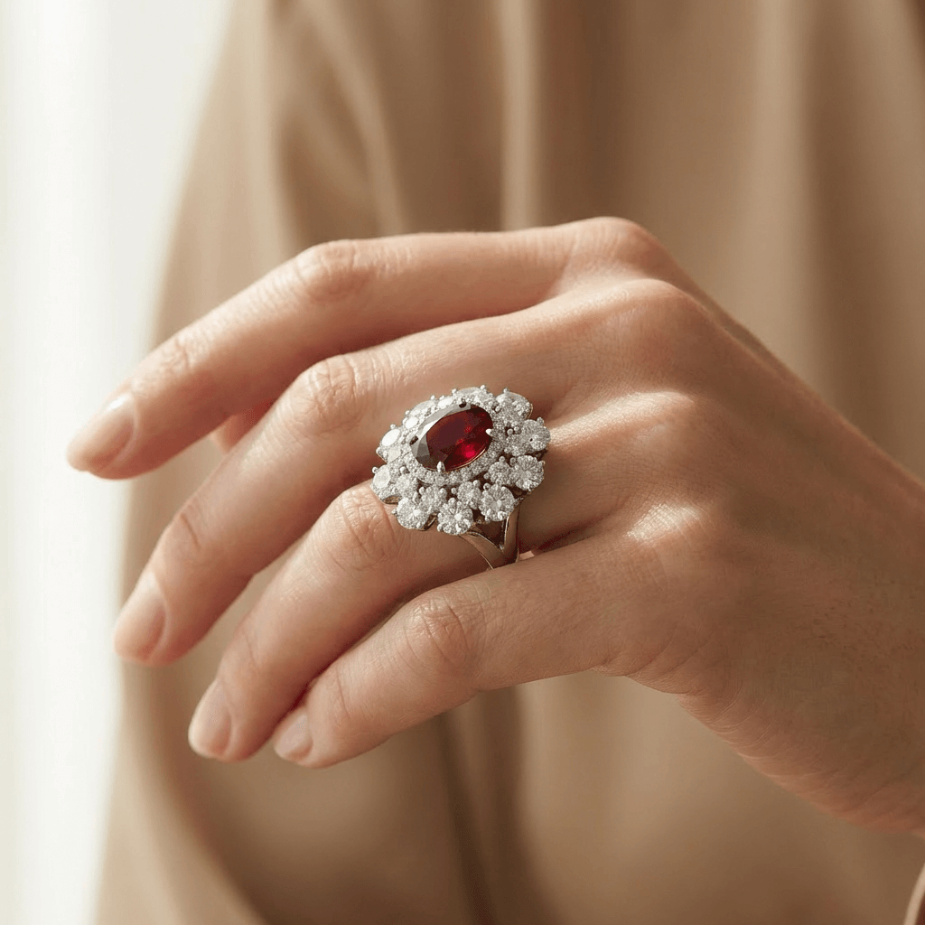 טבעת גרנט לב "אהבה לוהטת" | גרנט 0.89ct | זהב לבן 18K