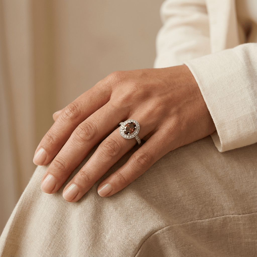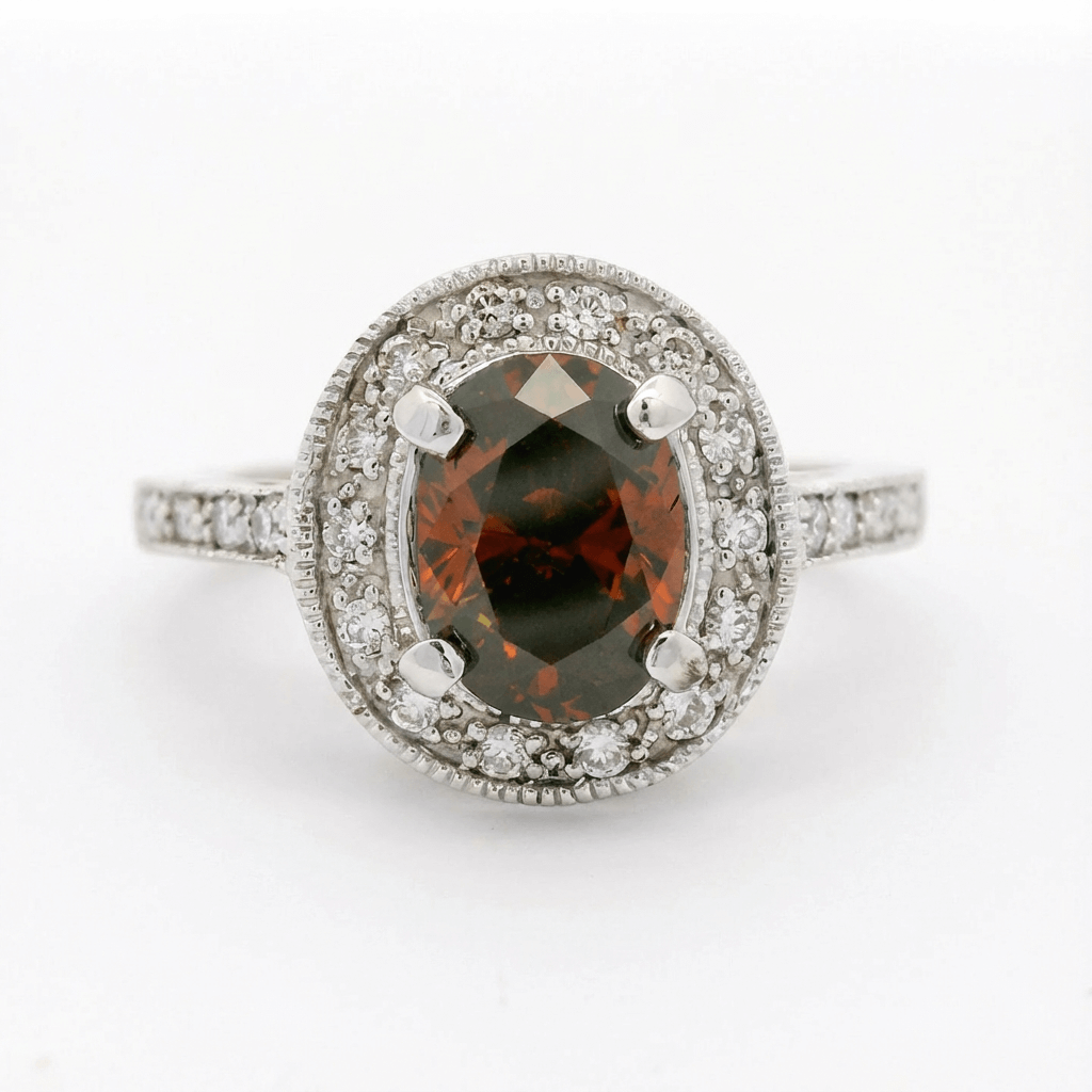 טבעת יהלום "הילה וינטג'" | יהלום כתום-חום 1.51ct | פלטינום