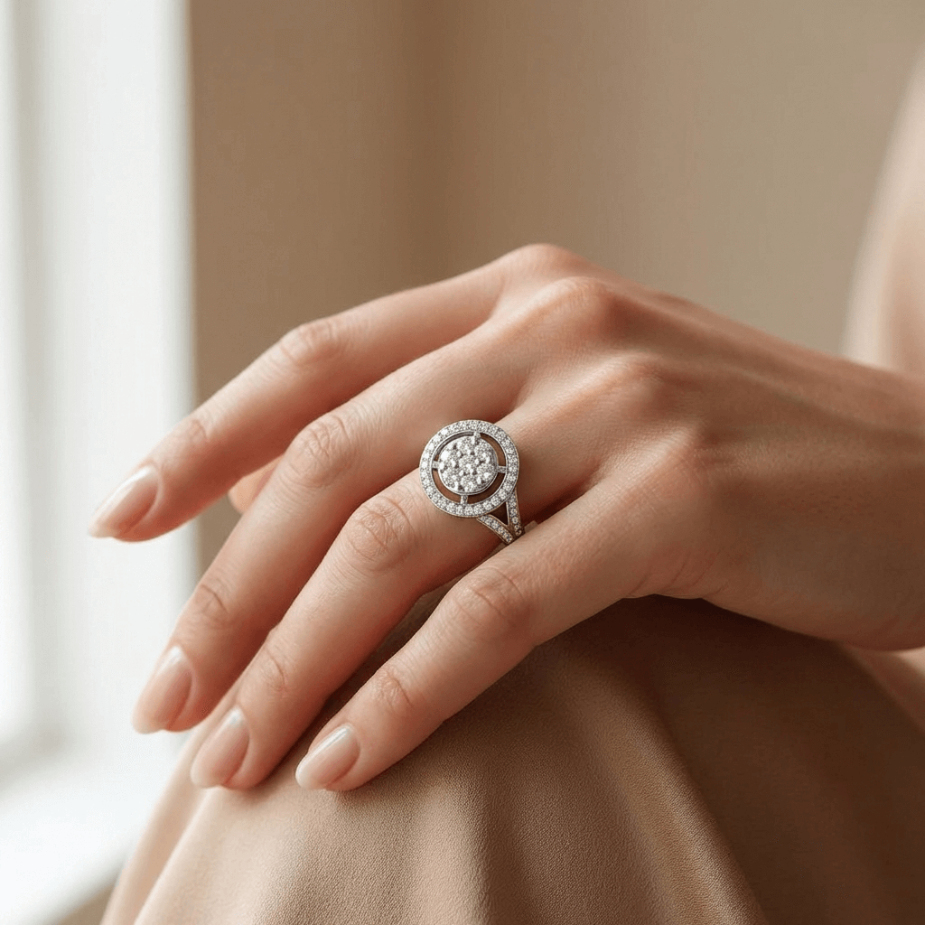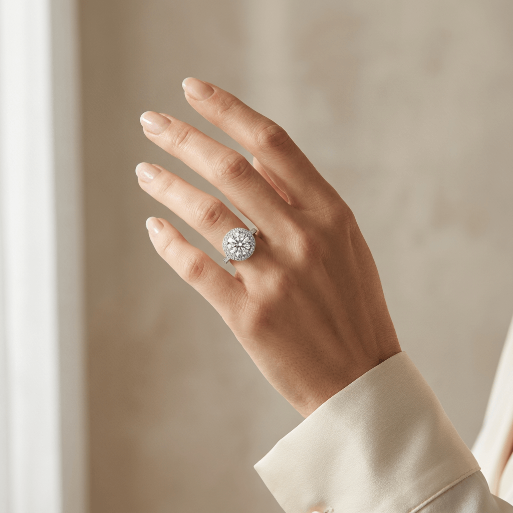 טבעת יהלום "הילה כפולה מלכותית" | יהלום 3.83ct | פלטינום