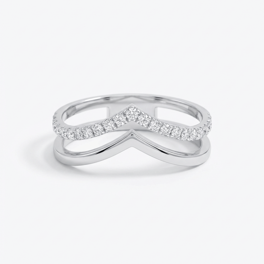 טבעת V כפולה משובצת יהלומים | 0.25 קראט | זהב 14K