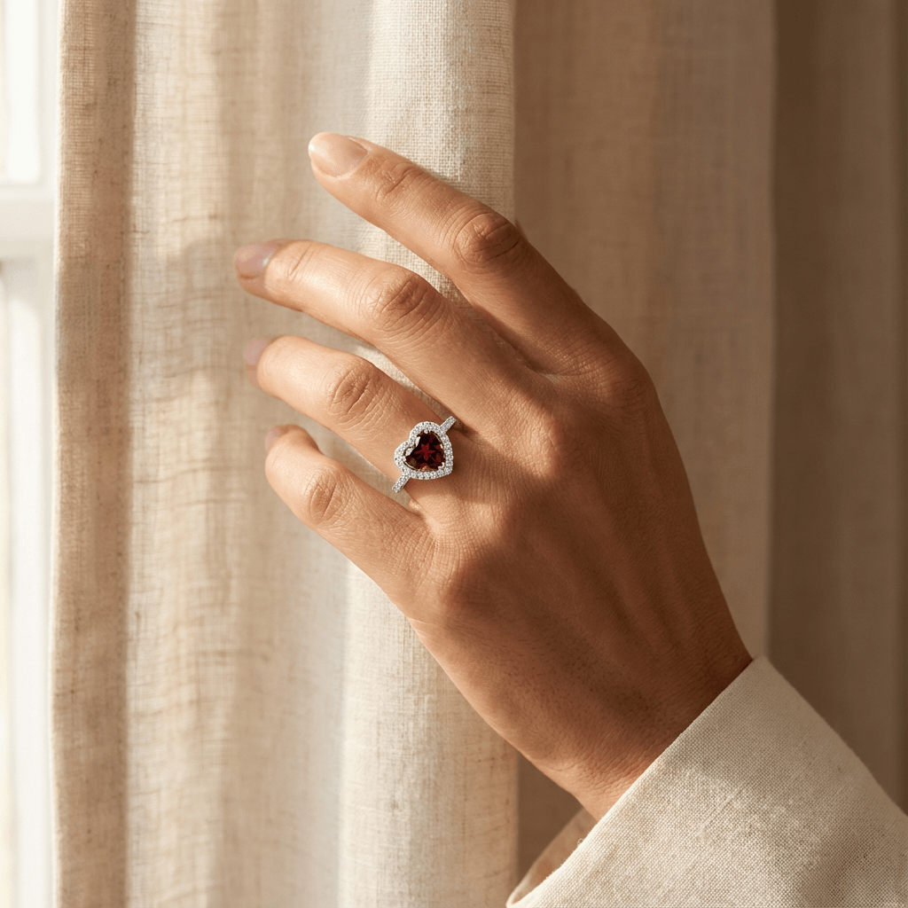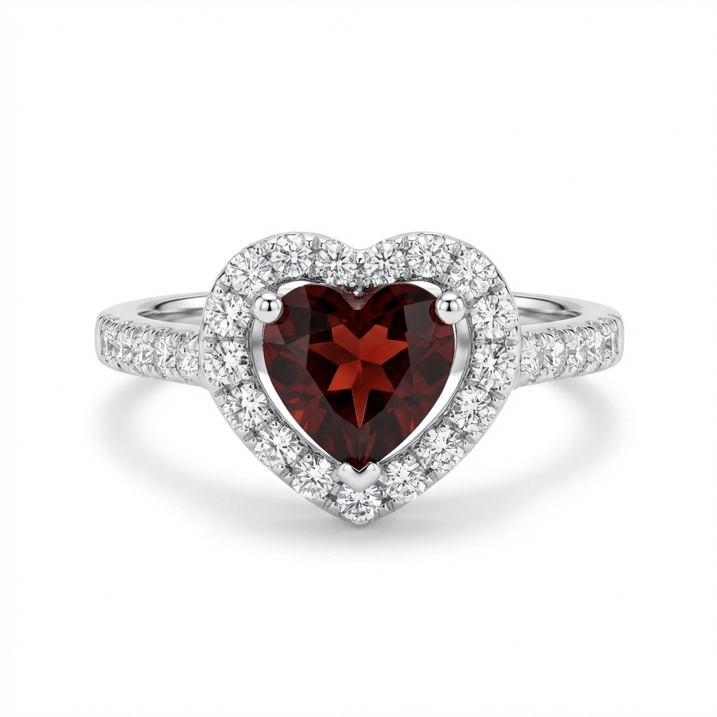 טבעת גרנט לב "אהבה לוהטת" | גרנט 0.89ct | זהב לבן 18K
